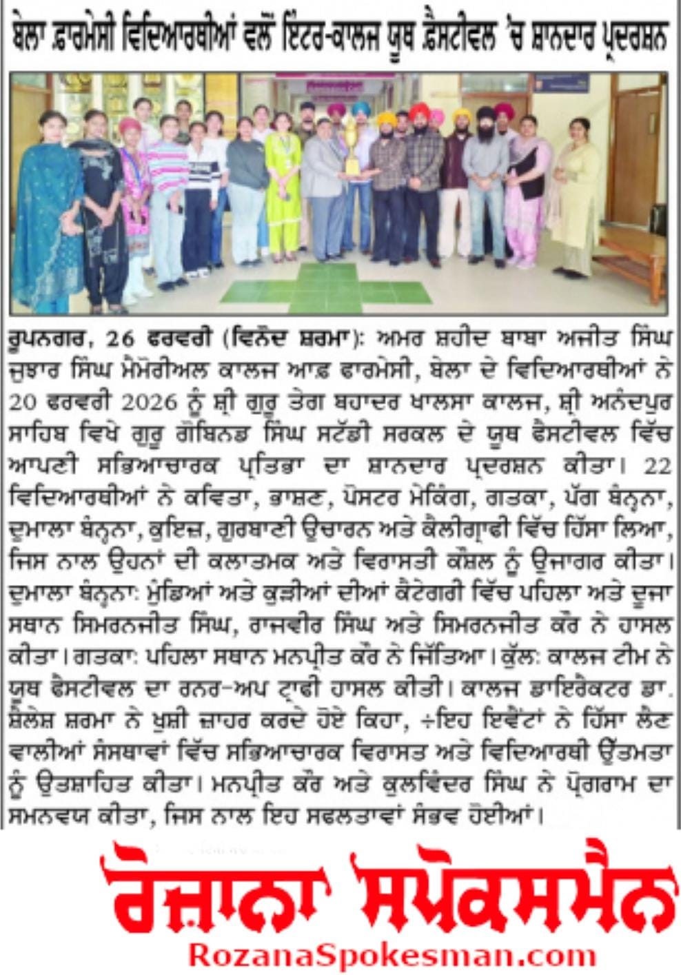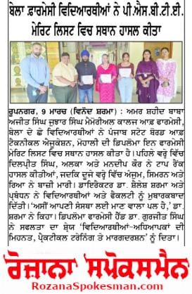 Amar Shaheed Baba Ajit Singh Jujhar Singh Memorial College of Pharmacy, Bela