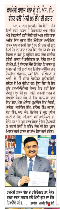 Amar Shaheed Baba Ajit Singh Jujhar Singh Memorial College of Pharmacy, Bela