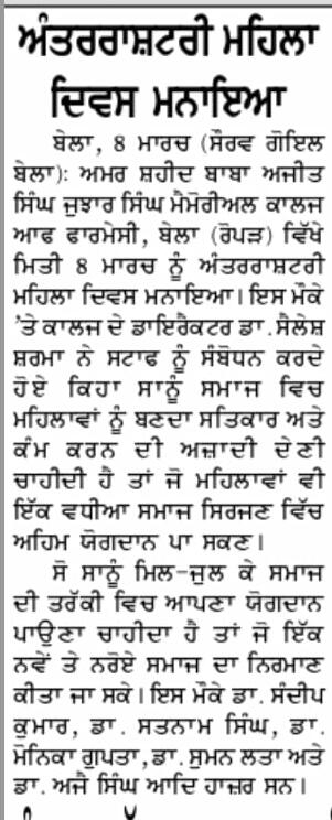 Amar Shaheed Baba Ajit Singh Jujhar Singh Memorial College of Pharmacy, Bela