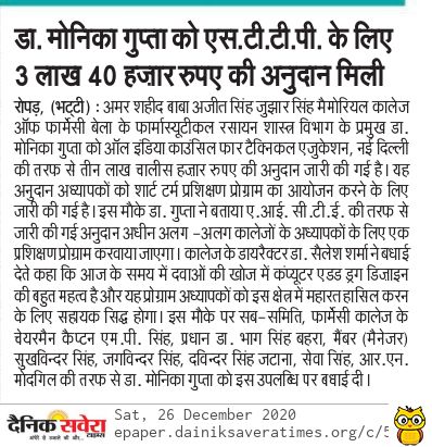 Amar Shaheed Baba Ajit Singh Jujhar Singh Memorial College of Pharmacy, Bela