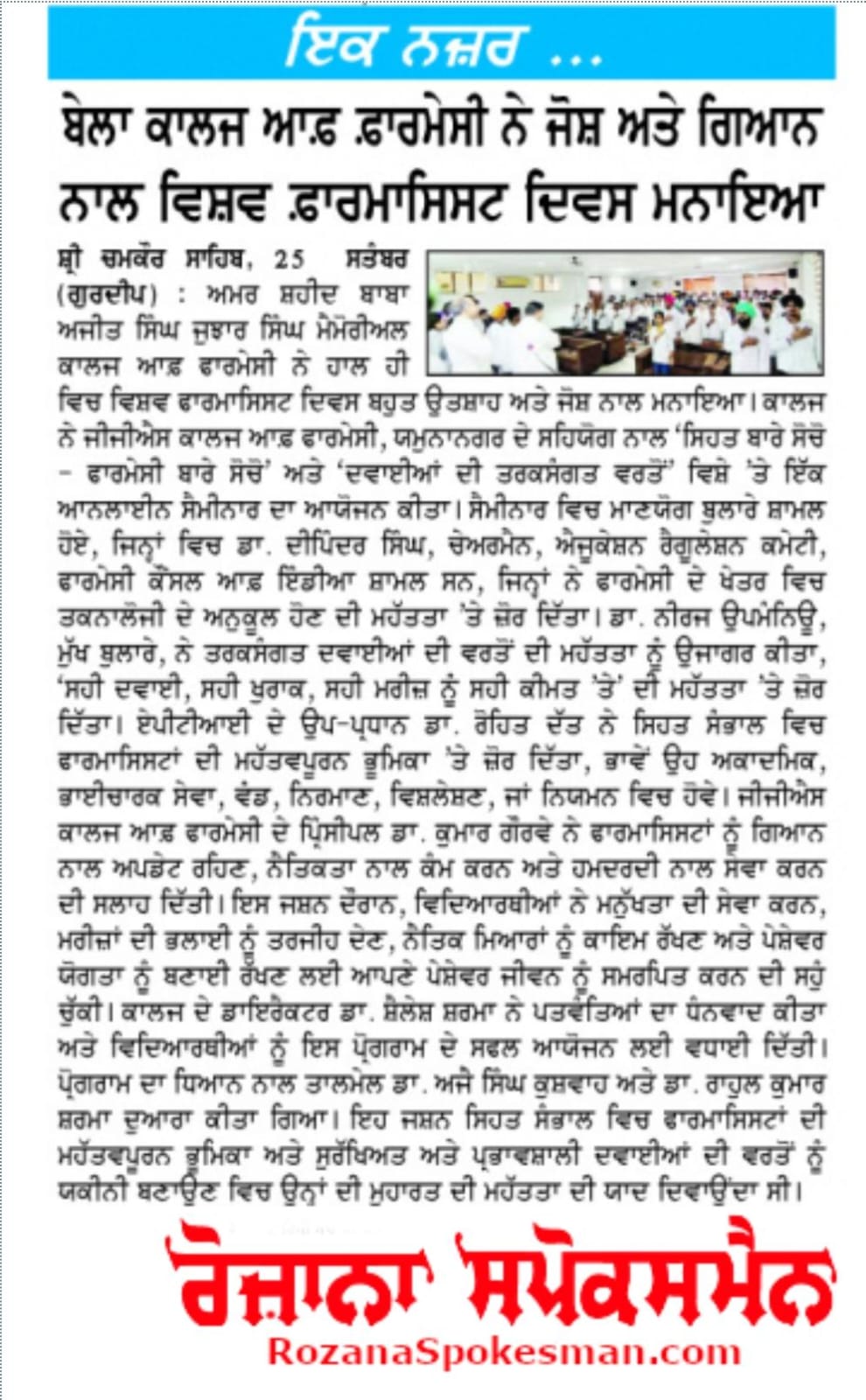 Amar Shaheed Baba Ajit Singh Jujhar Singh Memorial College of Pharmacy, Bela