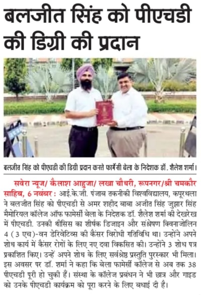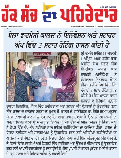 Amar Shaheed Baba Ajit Singh Jujhar Singh Memorial College of Pharmacy, Bela