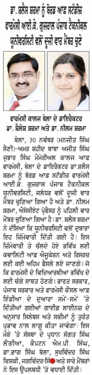 Amar Shaheed Baba Ajit Singh Jujhar Singh Memorial College of Pharmacy, Bela