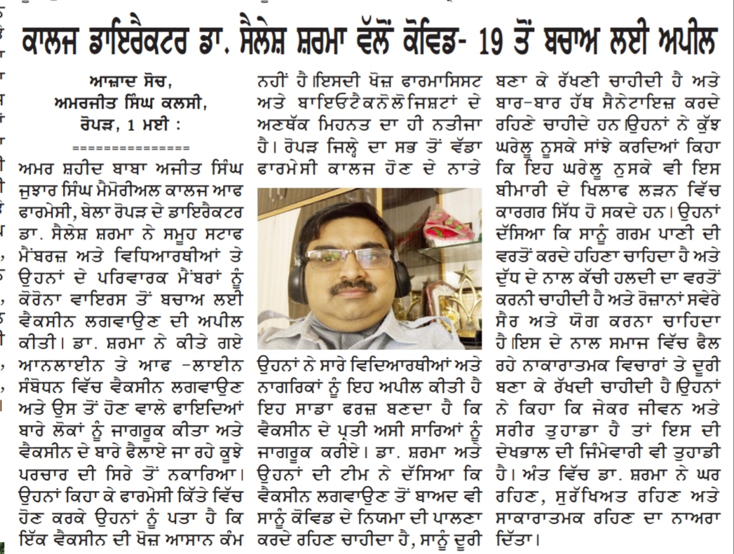 Amar Shaheed Baba Ajit Singh Jujhar Singh Memorial College of Pharmacy, Bela