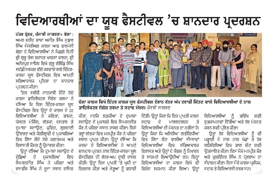 Amar Shaheed Baba Ajit Singh Jujhar Singh Memorial College of Pharmacy, Bela