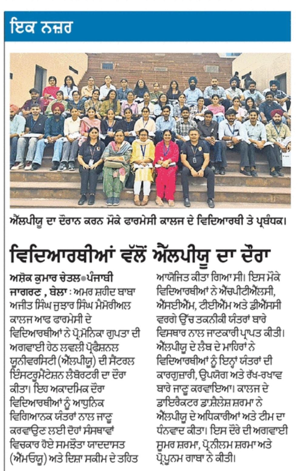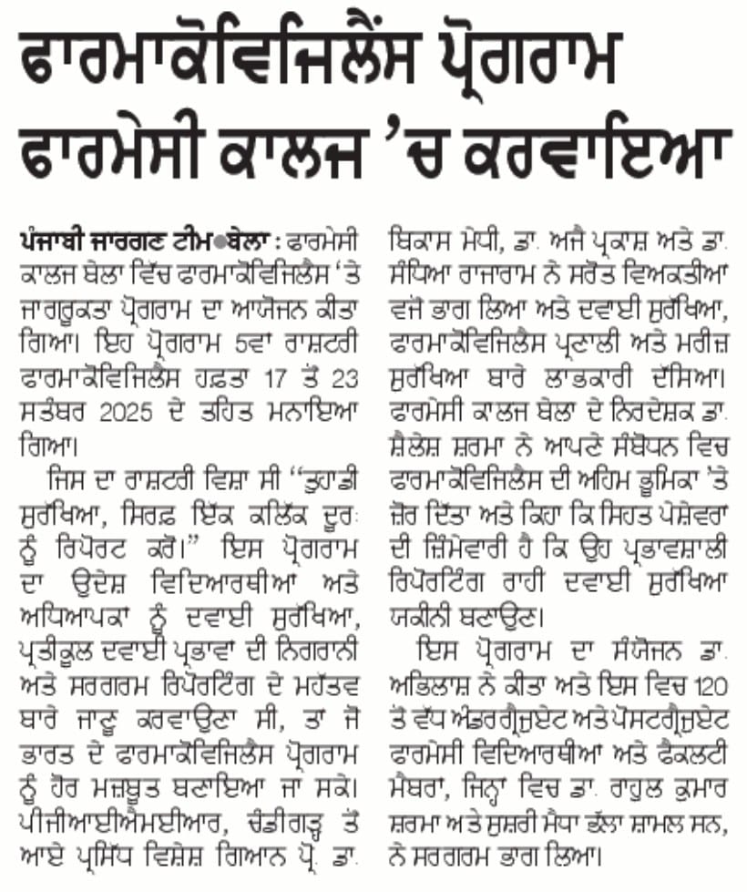 Amar Shaheed Baba Ajit Singh Jujhar Singh Memorial College of Pharmacy, Bela