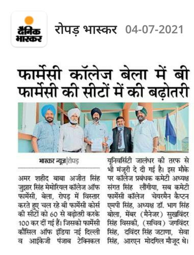 Amar Shaheed Baba Ajit Singh Jujhar Singh Memorial College of Pharmacy, Bela