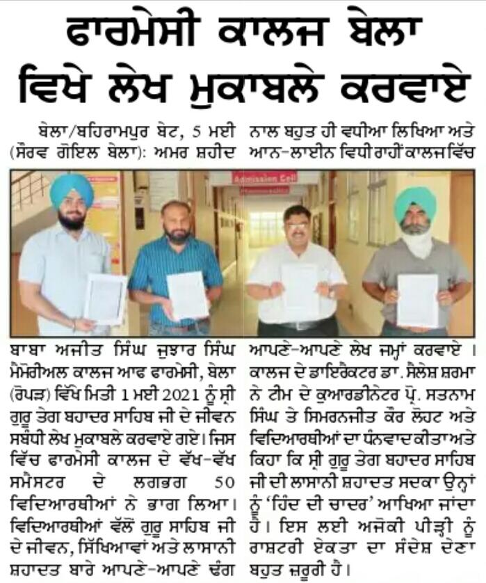 Amar Shaheed Baba Ajit Singh Jujhar Singh Memorial College of Pharmacy, Bela
