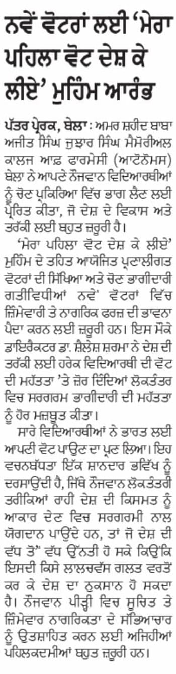 Amar Shaheed Baba Ajit Singh Jujhar Singh Memorial College of Pharmacy, Bela
